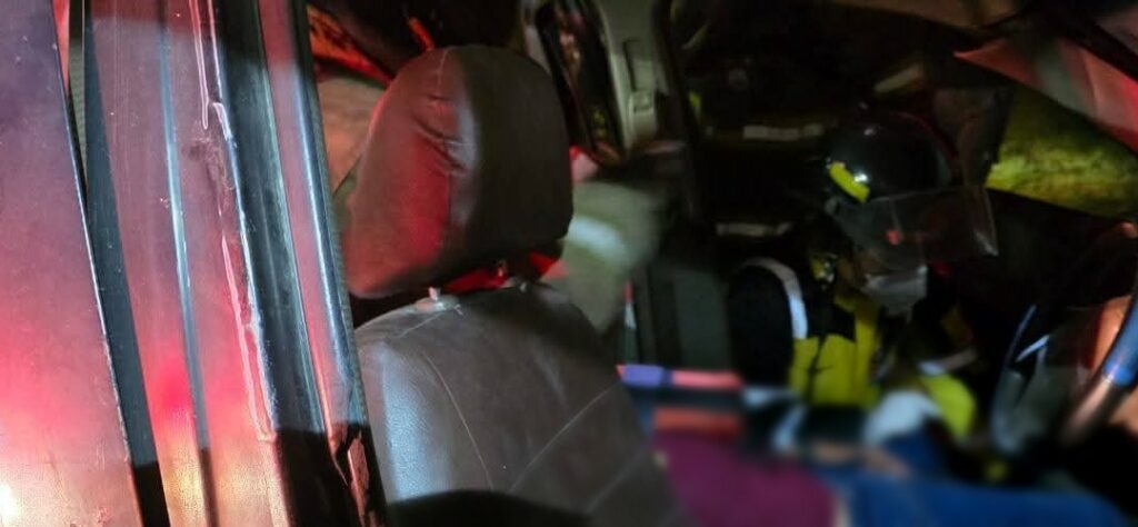 Bomberos Voluntarios utilizaron equipo de rescate para liberar al conductor, quien quedó atrapado dentro del automotor.