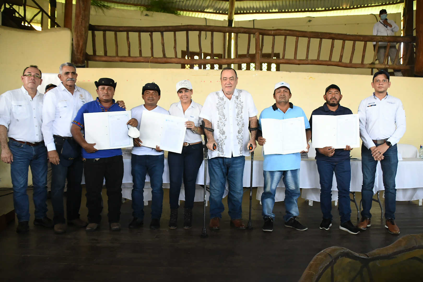 Livingston, Izabal, 4 oct (AGN).- El presidente Alejandro Giammattei fue el testigo de honor en la firma de un convenio para la incorporación de familias de Tapon Creek en el proyecto de regularización de comunidades.