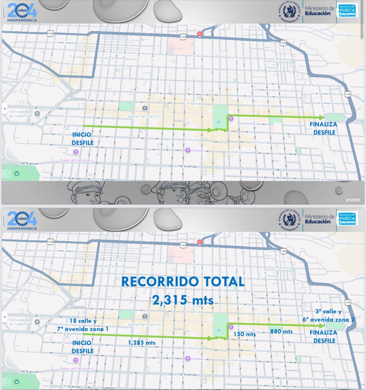 “Tendrá un recorrido diferente al de años anteriores. Ahora será menos extenso, más ordenado y saldrá de la 7ª avenida y 18 calle, zona 1; tomará la 7ª avenida hasta el Palacio Nacional de la Cultura, luego la 6ª calle y girará a la izquierda para incorporarse al Paseo de la Sexta Avenida hacia el Hipódromo del Norte, donde finalizará el evento”, explicó Montejo.