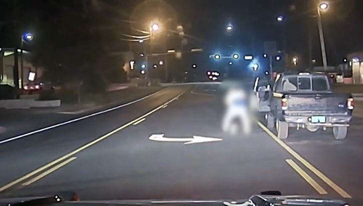 Las imágenes de video muestran que Roybal conduce lentamente de retroceso y luego sigue su marcha. Además, un oficial le pide a Roybal que salga del vehículo, pero el hombre saca un brazo, muestra una pistola y dispara al menos una vez.