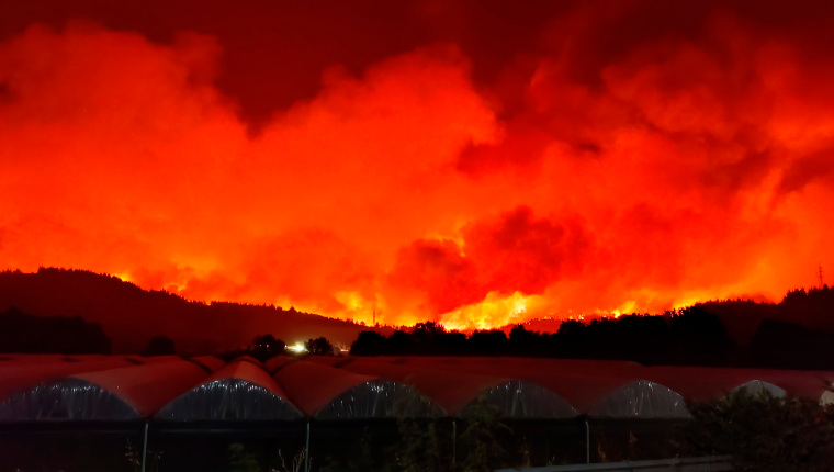 Los bomberos batallaban para evitar que las violentas llamas alcancen la localidad de Istiea, que alberga a miles de habitantes.