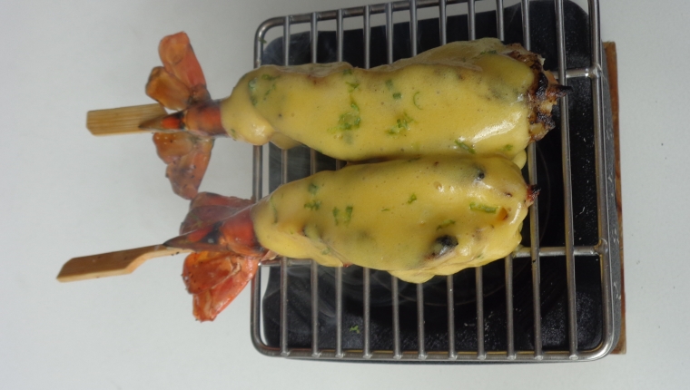 Transcurrido ese tiempo, llevarlo la parrilla, acompañado de los vegetales salteados, bañados con una salsa argentina, que se prepara al cocinar el vino, el vinagre, el aceite de oliva y la especias, licuarlos y colarlos. Se presenta en el plato con gel de zanahoria, mayonesa chipotle, rodaja de limón sellado a la plancha, crocante de papa, brotes y flores comestibles.