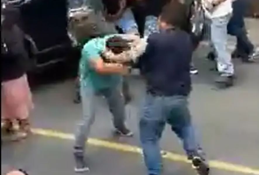 Graban cuando pilotos de buses interrumpen el tránsito y se van a los golpes en Chimaltenango