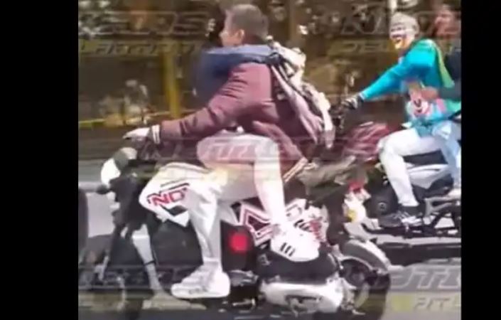Durante la grabación, se observa que la persona mantiene el equilibrio del vehículo; sin embargo, pudo haber puesto en peligro a otros automovilistas.