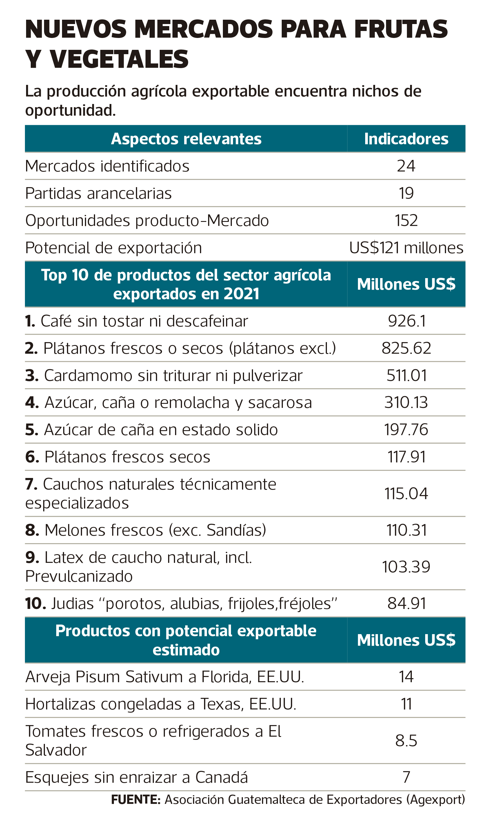 “Muchos de estos productos son los que queremos posicionar en nuestra siguiente Feria Internacional Agritrade, en dónde estamos buscando impulsarlos como nuestra oferta principal”, indica Andrés Bickford, gerente del sector agrícola de la Asociación Guatemalteca de Exportadores (Agexport).