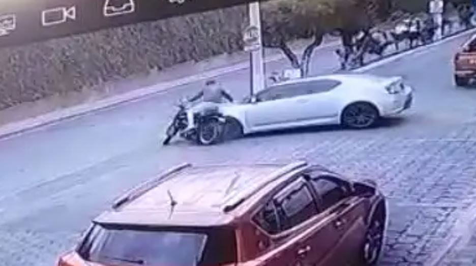 Luego en otra toma de la cámara se ve cuando el auto circula contra la vía y la motocicleta queda de frente.