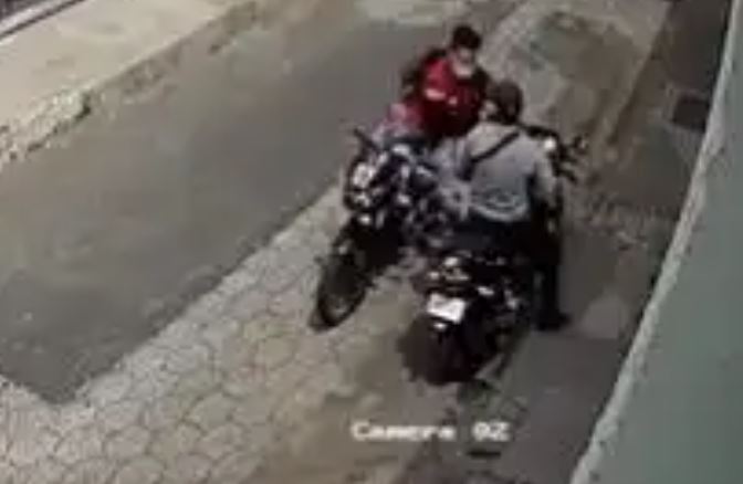 Todo parece normal, pero en cuestión de segundos llegaron dos sujetos en una motocicleta.