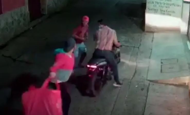 Según las imágenes, la víctima fue despojada de su teléfono celular y luego ambos malhechores huyeron con rumbos desconocido.