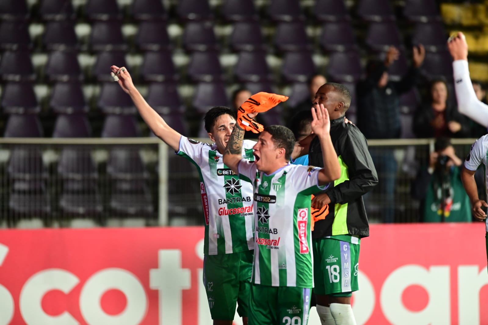 Jugadores de Antigua luego de ganar a Saprissa por Copa Centroamericana. (Foto Prensa Libre: Cortesía Diario Extra)