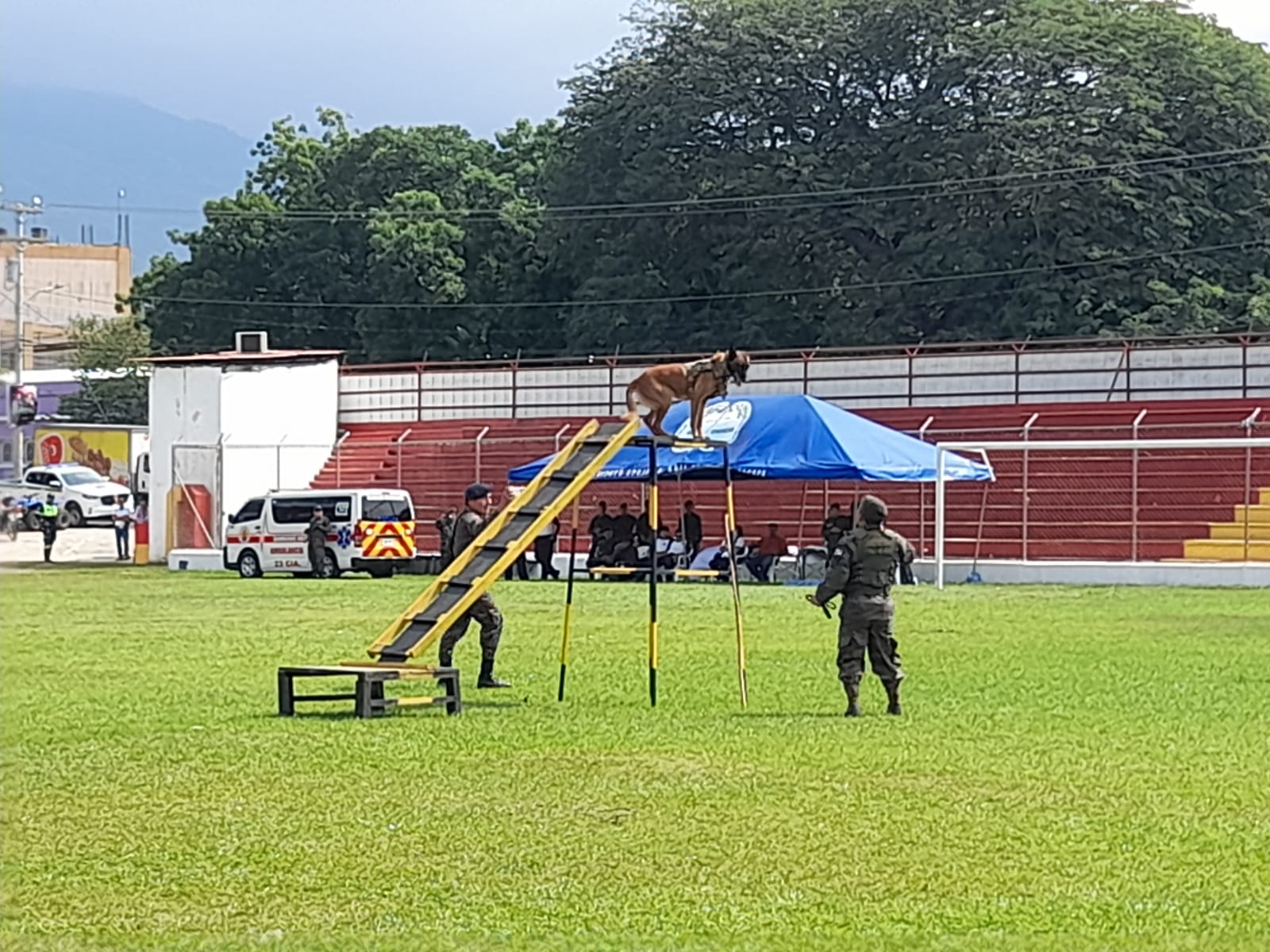 En la actividad se presentaron diversos actos, entre ellos salto en paracaídas y presentación de la unidad canina. Esta última efectuó demostraciones de búsqueda y rescate, búsqueda de estupefacientes, salto en aros con flamas y ataque y detención de ladrones.