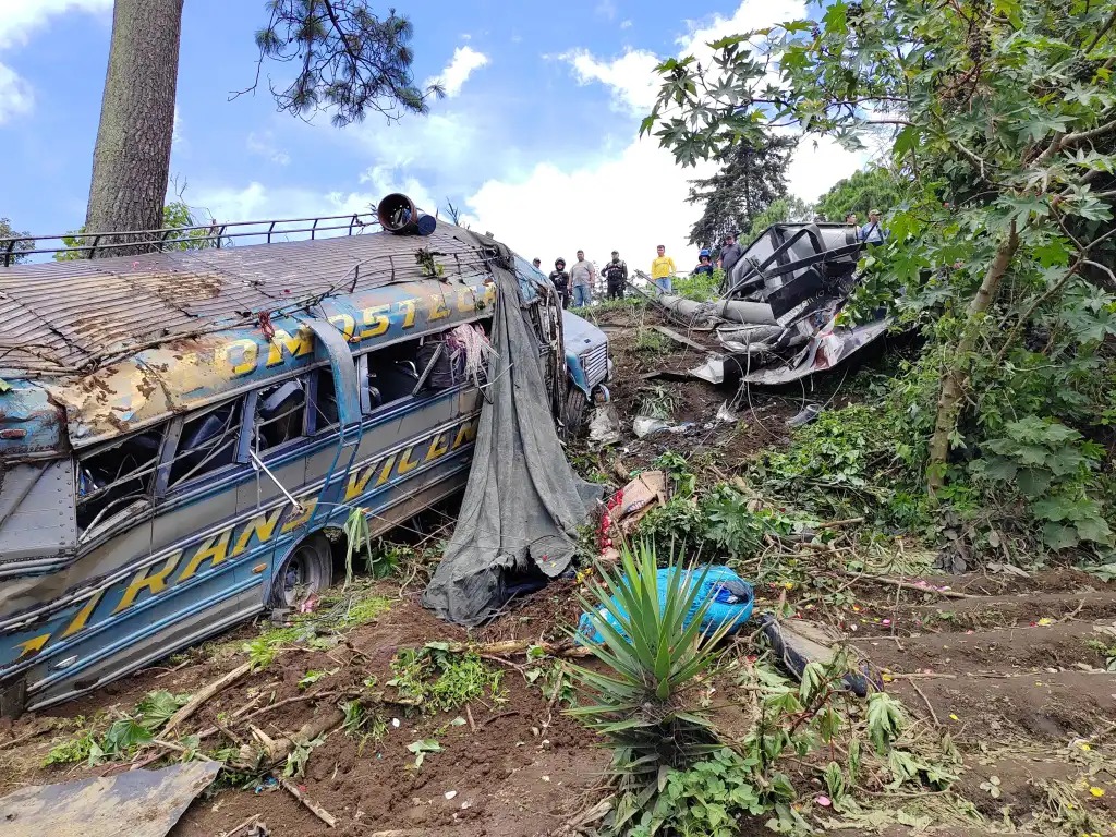 Según relatos de vecinos, el piloto del autobús que cayó a una hondonada en Santa María Cauqué, Sacatepéquez, viajaba a excesiva velocidad porque iba “peleando por pasaje” con otro bus.