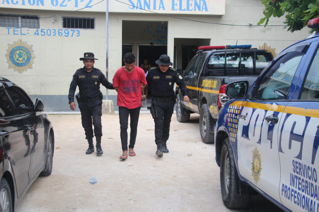 PNC captura a uno de los sospechosos de haber saqueado una escuela en San Benito, Petén. (Foto Prensa Libre: PNC).
