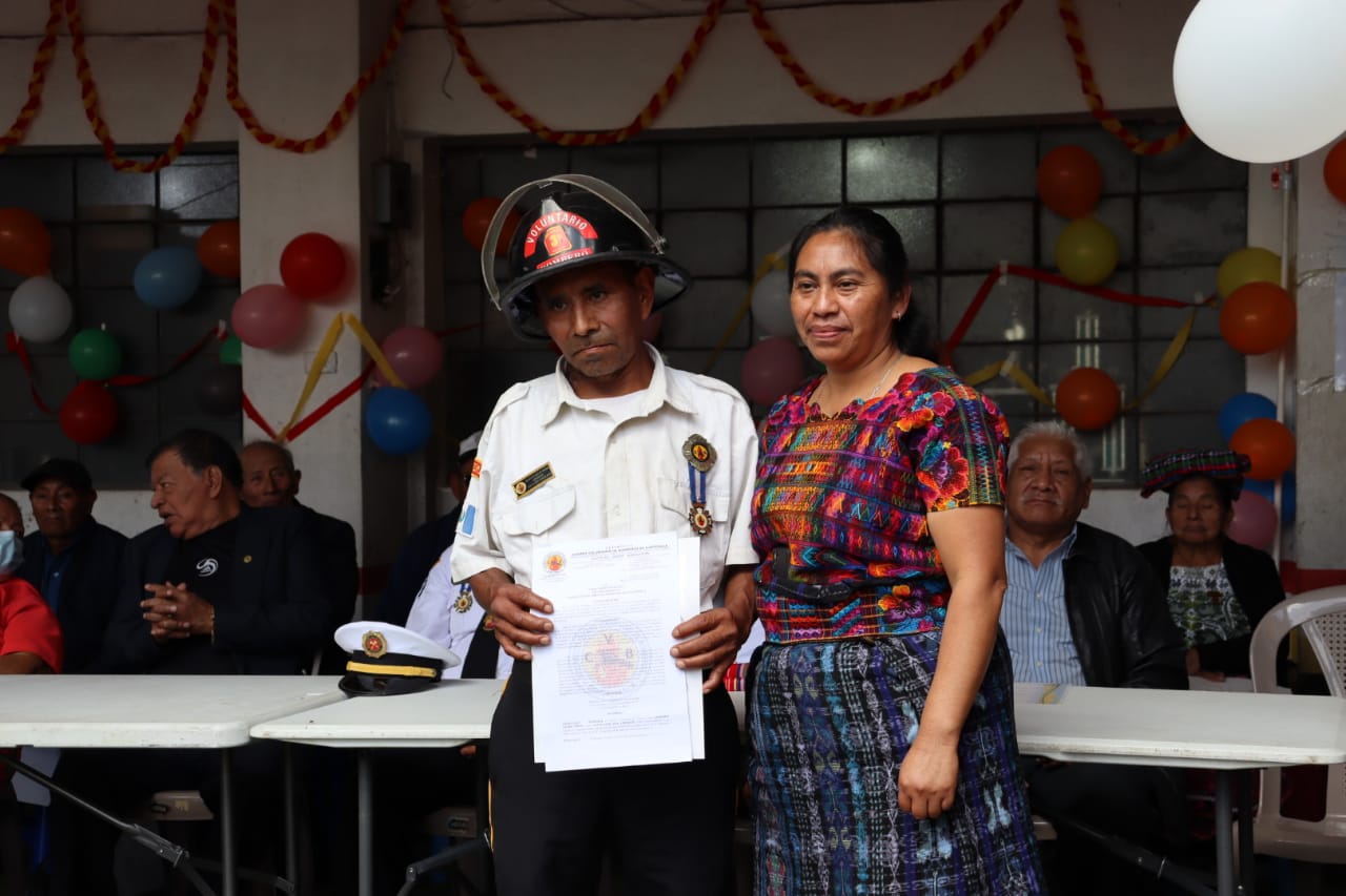 Asimismo, se condecoró a Alberto Patán Orón, quien lleva 25 años de servicio ininterrumpido y ha atendido múltiples emergencias en Santa María de Jesús y lugares aledaños. El bombero se dijo honrado por el reconocimiento y reafirmó su compromiso de ayudar a quien lo necesite.