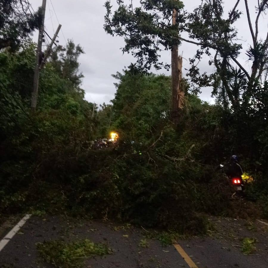 Esta mañana se reportó la caída de un árbol en el kilómetro 31 de la ruta hacia Santa Elena Barillas, en Villa Canales.