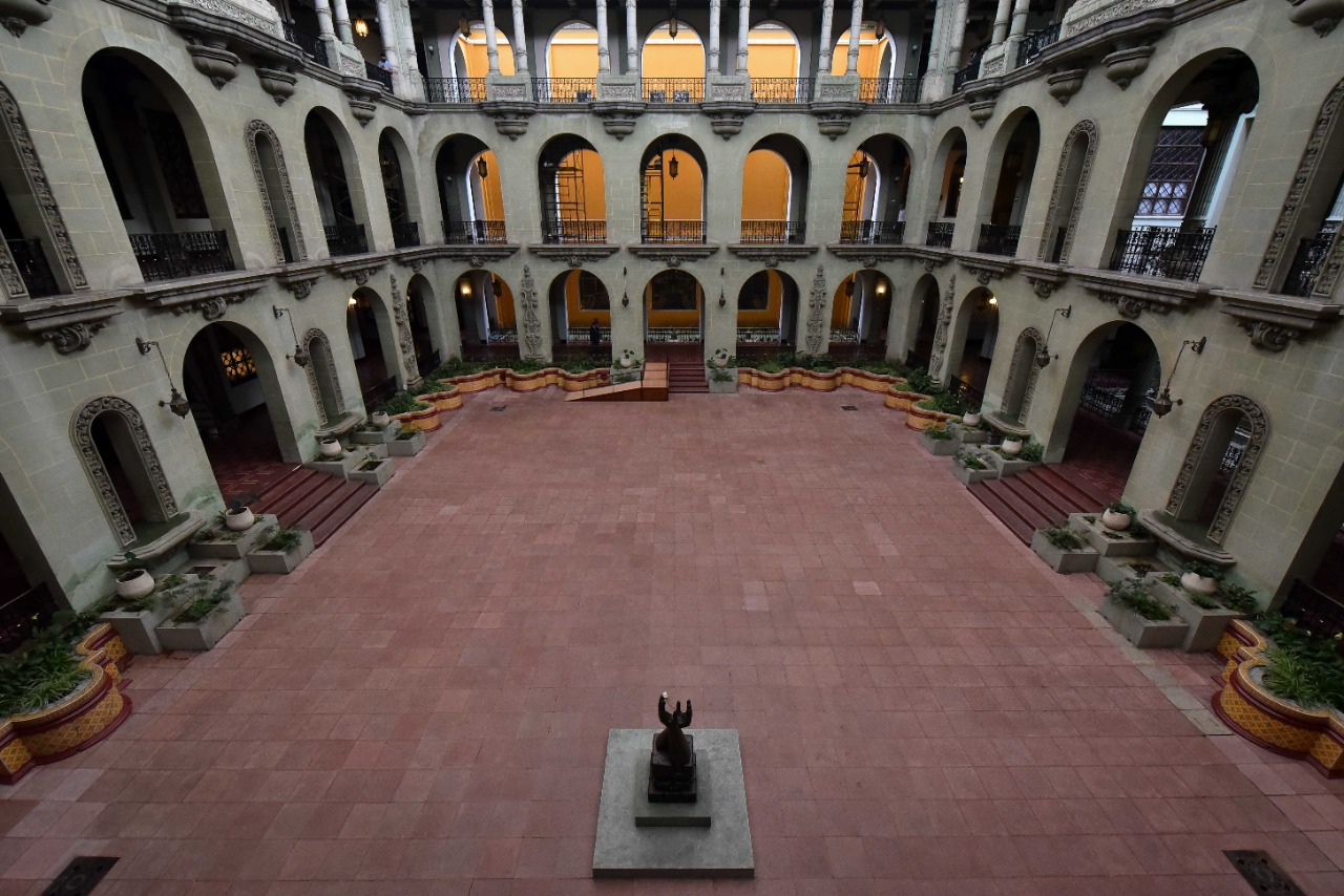 Entre los trabajos de restauración está el cambio de membranas que protegen la estructura de la lluvia y el sol y mantenimiento de las estructuras de las cubiertas del Patio de la Paz y Patio de la Vida. Además, se coordinó la limpieza de la fachada y la restauración de vitrales, pasillos, lámparas, pisos y otros detalles arquitectónicos.