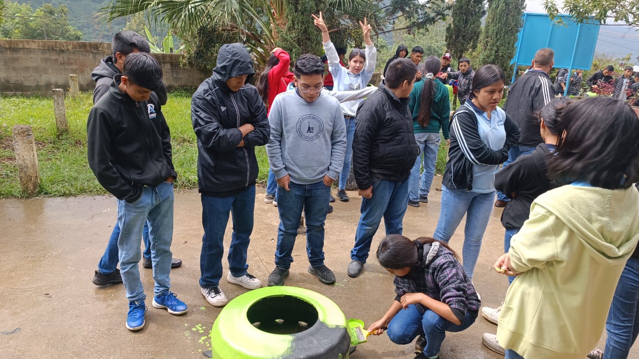 Huehuetenango, 17 nov. (AGN) – El Ministerio de Ambiente y Recursos Naturales (MARN) en alianza con el Instituto Nacional de Educación Básica con Orientación Agrícola del municipio de San Pedro Necta, Huehuetenango, llevaron a cabo un taller sobre la elaboración de macetas con llantas de vehículos denominado Guardianes Ecológicos, en donde participaron aproximadamente 60 jóvenes y señoritas.