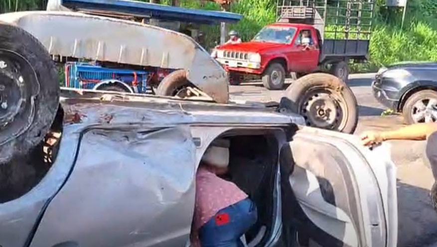 Bomberos Municipales atendieron al conductor, quien presentó crisis nerviosa. Afortunadamente, no se reportaron víctimas mortales, únicamente daños materiales.