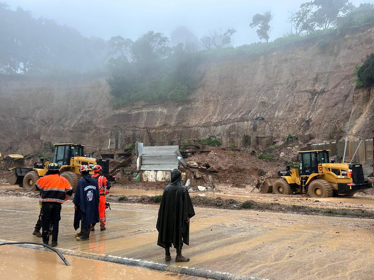 El derrumbe ocurrido en el kilómetro 24.5 de la carretera a El Salvador, que mantiene bloqueado el p...