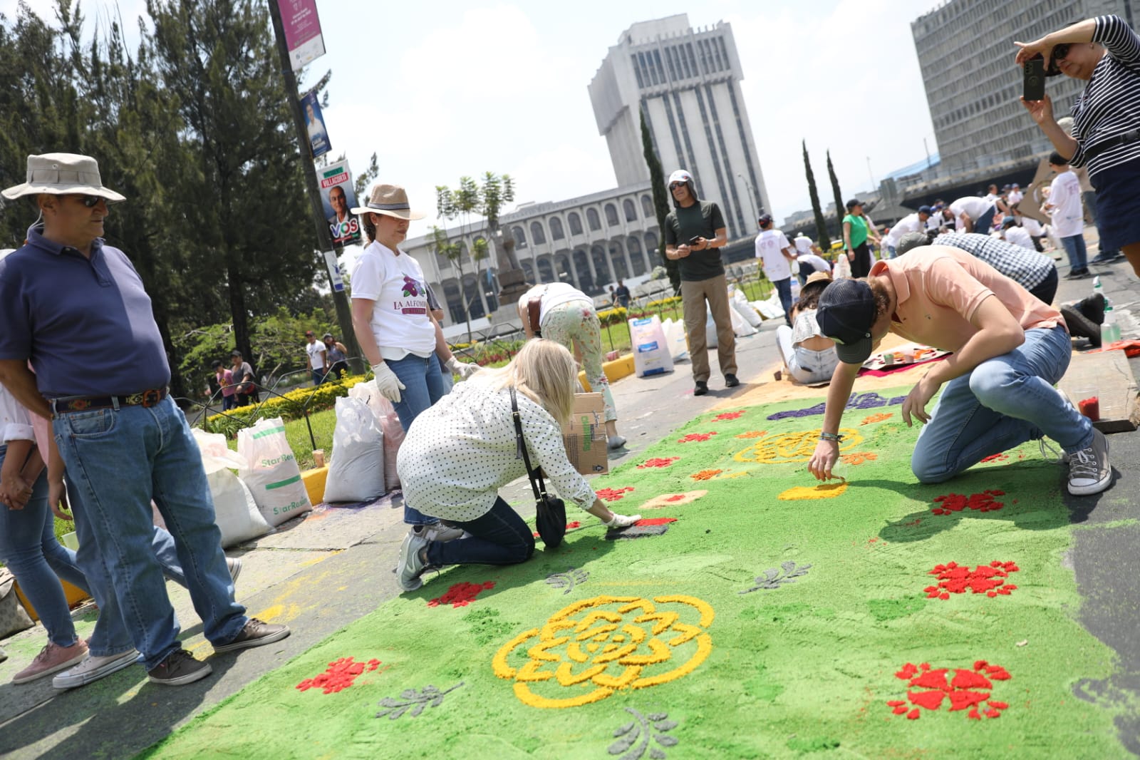 Tres mil voluntarios participan en elaboración de alfombra para el paso del Cristo Yacente del Calvario y la Reina de la Paz