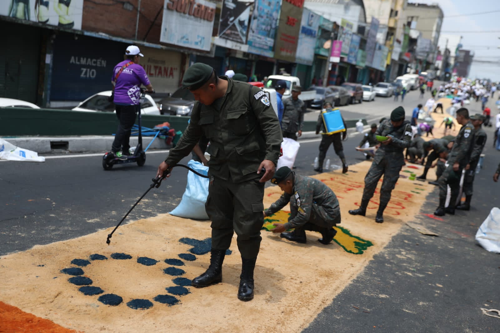 Este Viernes Santo, nuevamente la Arquidiócesis de Guatemala y laiglesia El Calvario, con apoyo de la municipalidad, realizan la alfombra más grande de la ciudad.