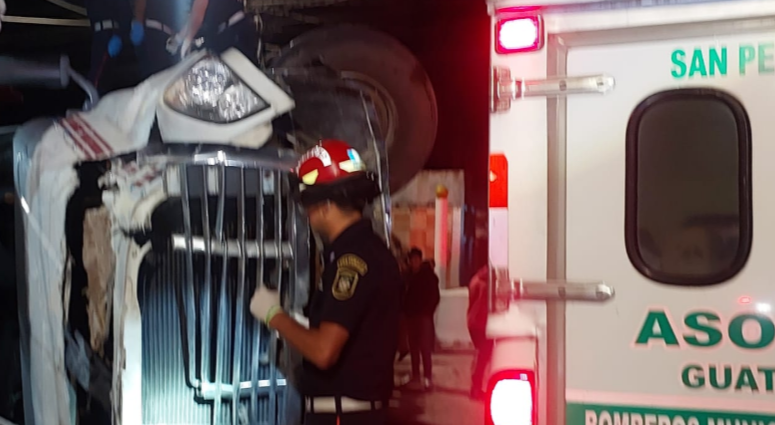 Un fuerte accidente de tránsito ocurrió durante la noche en la zona 3 de San Marcos. Se reportó que un vehículo de transporte pesado volcó, generando alarma entre los vecinos del sector.