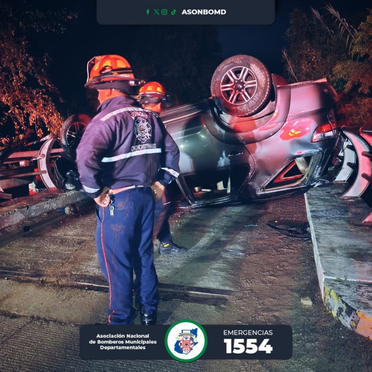 Reportan un vehículo volcado en Chichicastenango durante esta madrugada.