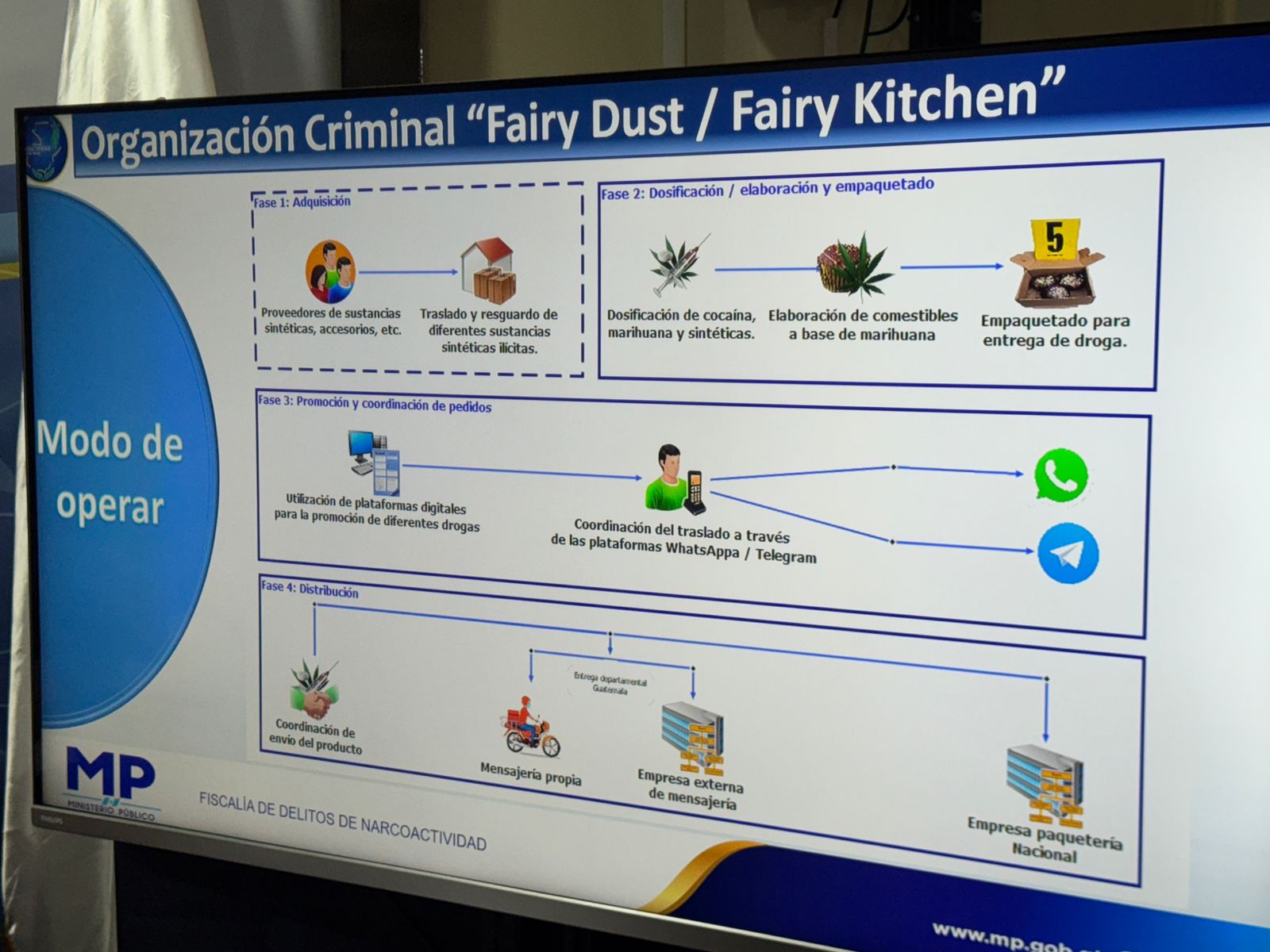 “La organización criminal “Fairy Dust / Fairy Kitchen”, a raíz de las actividades ilícitas que realizaba, obtuvo gran poder adquisitivo, lo que le permitió llegar a acuerdos y no ser consignada al momento de infringir la ley por parte de agentes de la PNC”, indicó el MP.