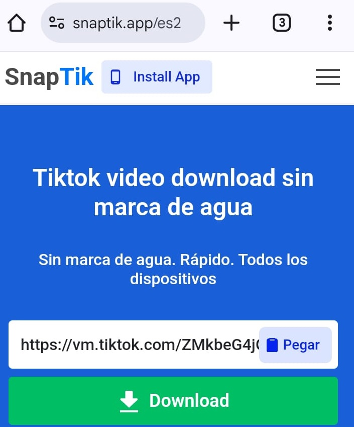 En la web de SnapTik, le aparecerá la opción para pegar el enlace de su video. Esto puede hacerlo desde su dispositivo móvil o computadora.