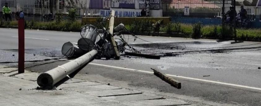 Un accidente entre un transporte pesado y un automóvil en el kilómetro 30 de la ruta Interamericana provocó la caída de un poste del tendido eléctrico que bloquea la vía.