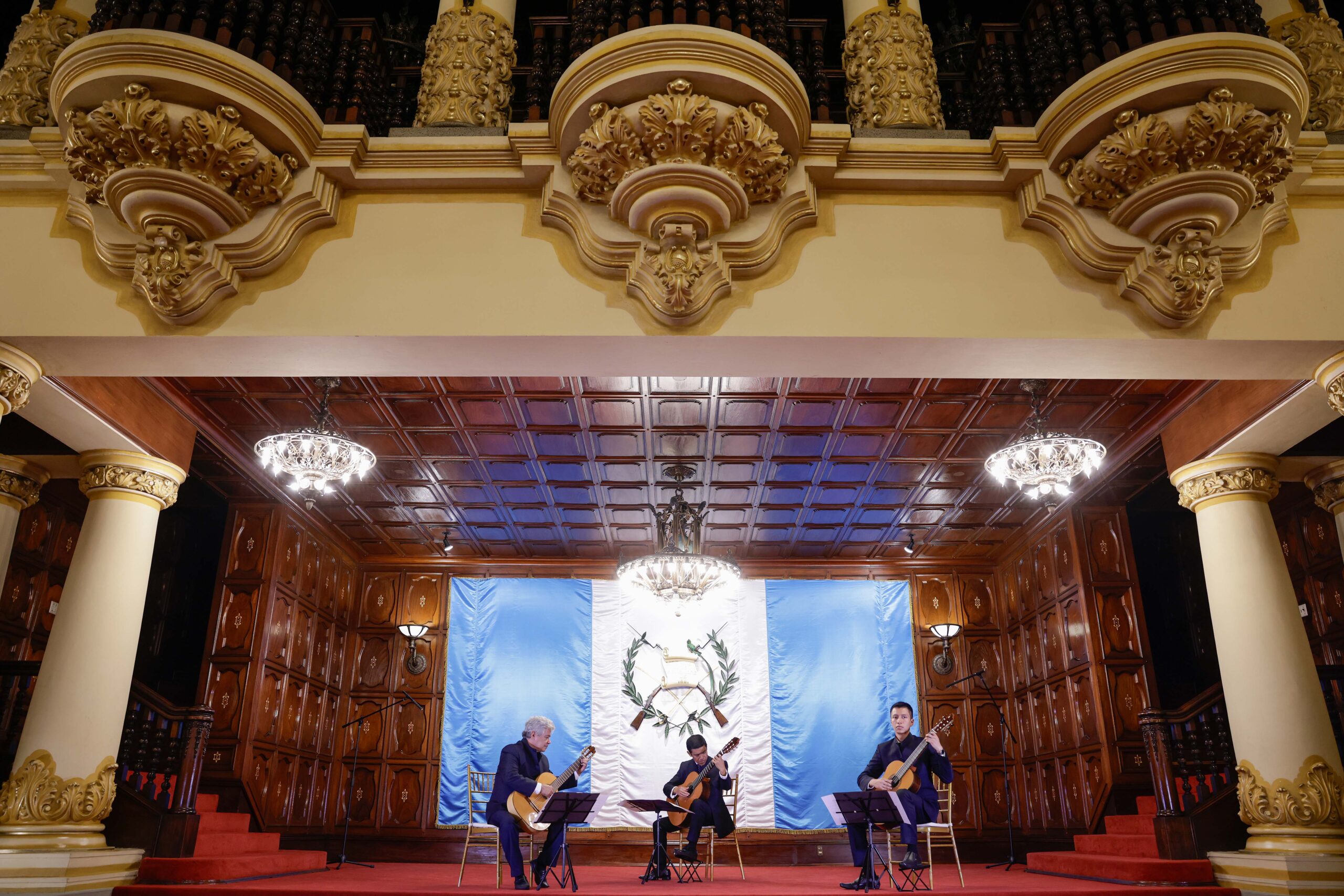 Ciudad de Guatemala, 6 sep (AGN). – Río Polochic, Danza paraguaya, Lamba, Recuerdos, Valseana, entre otras melodías, fueron interpretadas por el Trío Abetos, durante el concierto de cuerdas que se llevó acabo en el Salón Banderas, del Palacio Nacional de la Cultura.