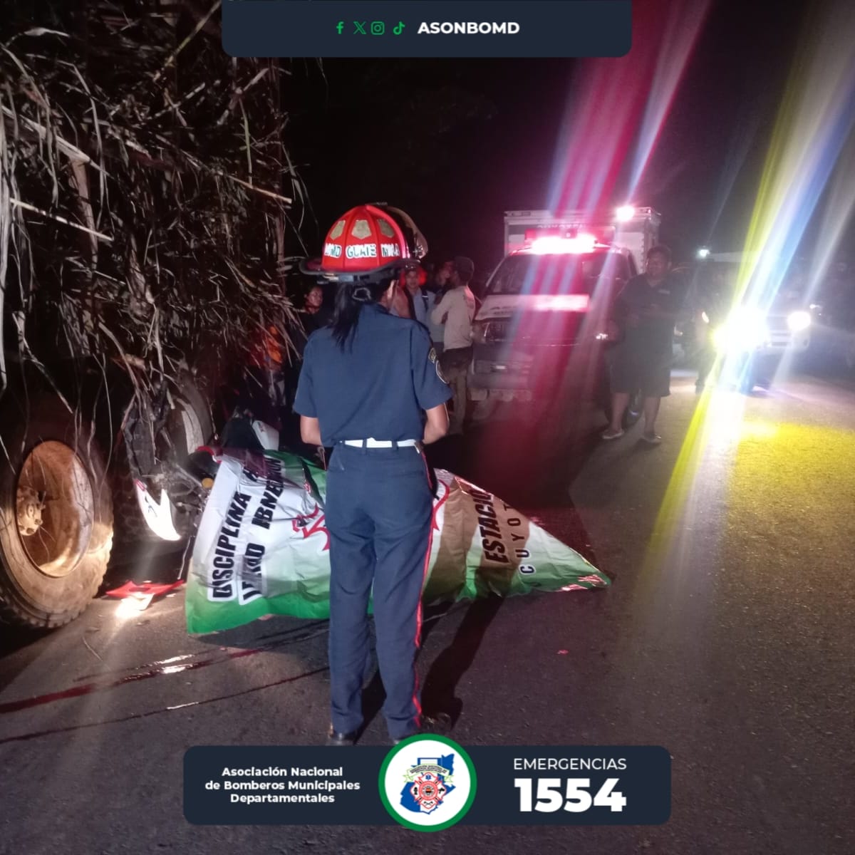 Fuerte accidente de tránsito en el Cantón Chacalte de Cuyotenango, Suchitepéquez donde un motorista perdió la vida tras colisionar violentamente contra la parte trasera de una jaula cañera que se encontraba detenida en la vía.