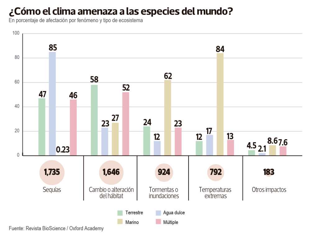 El análisis, que cifra en más de tres mil 500 el número de especies animales amenazadas por el cambio climático, arroja luz sobre las enormes lagunas existentes en la comprensión plena del riesgo que corre el reino animal.