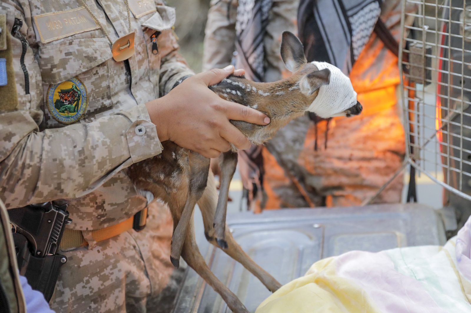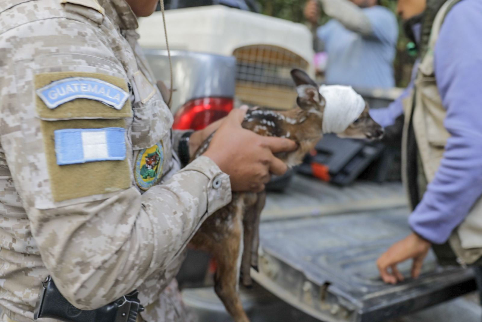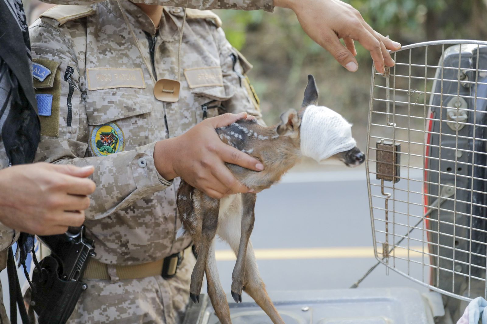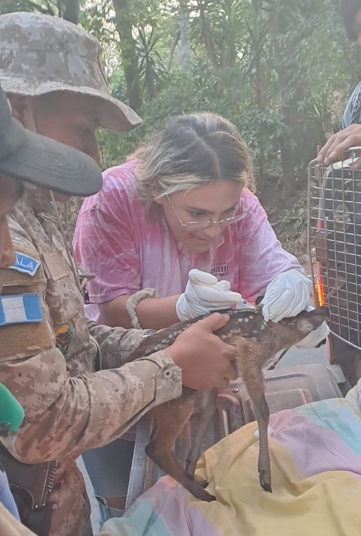 Sacatepéquez, 29 feb (AGN).- La Brigada Humanitaria y de Rescate del Ejército de Guatemala rescató una cría de venado cola blanca, en jurisdicción de la finca Margaritas, Palín, Escuintla.