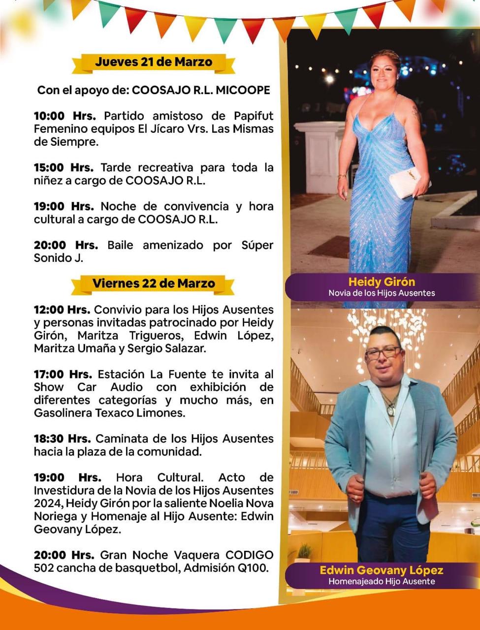 Para el domingo 24 de marzo por la mañana cuadrangular de futbol y quema de juegos pirotécnicos y baile.