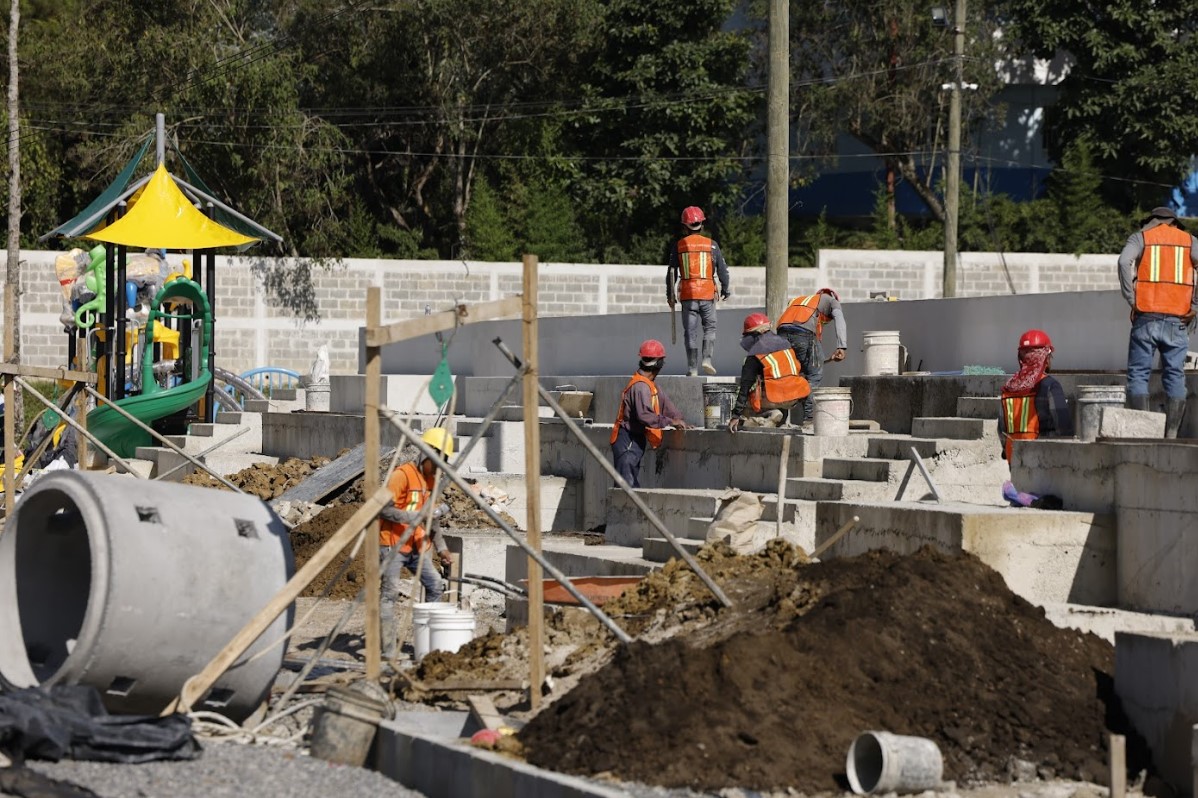 - Cancha de futbol 11 y cesta a un 50 % en avance, donde más de 200 espectadores disfrutarán de las actividades. Además, contará con tecnología de drenaje francés, camerinos equipados, iluminación LED y clínica de salud.