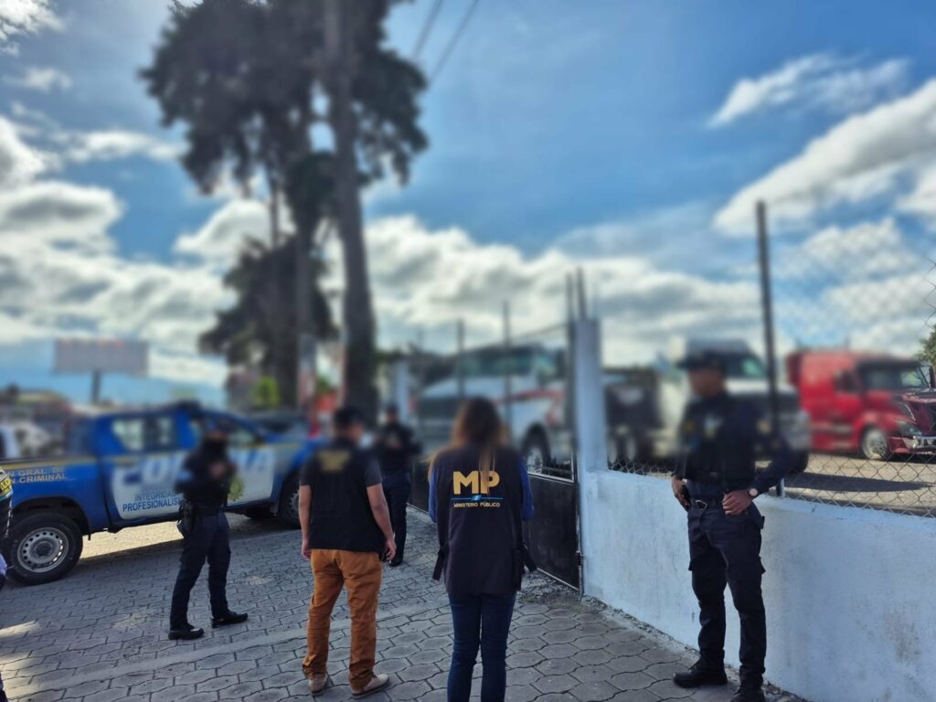 La Fiscalía de Distrito de Sacatepéquez en coordinación con la Fiscalía Regional VII Centro Occidente y con acompañamiento de la Policía Nacional Civil ejecuta diligencia de allanamiento, inspección, registro y secuestro de evidencia en un predio de vehículos y transportes situado en el km 52 de la ruta Interamericana, jurisdicción de El Tejar, Chimaltenango.