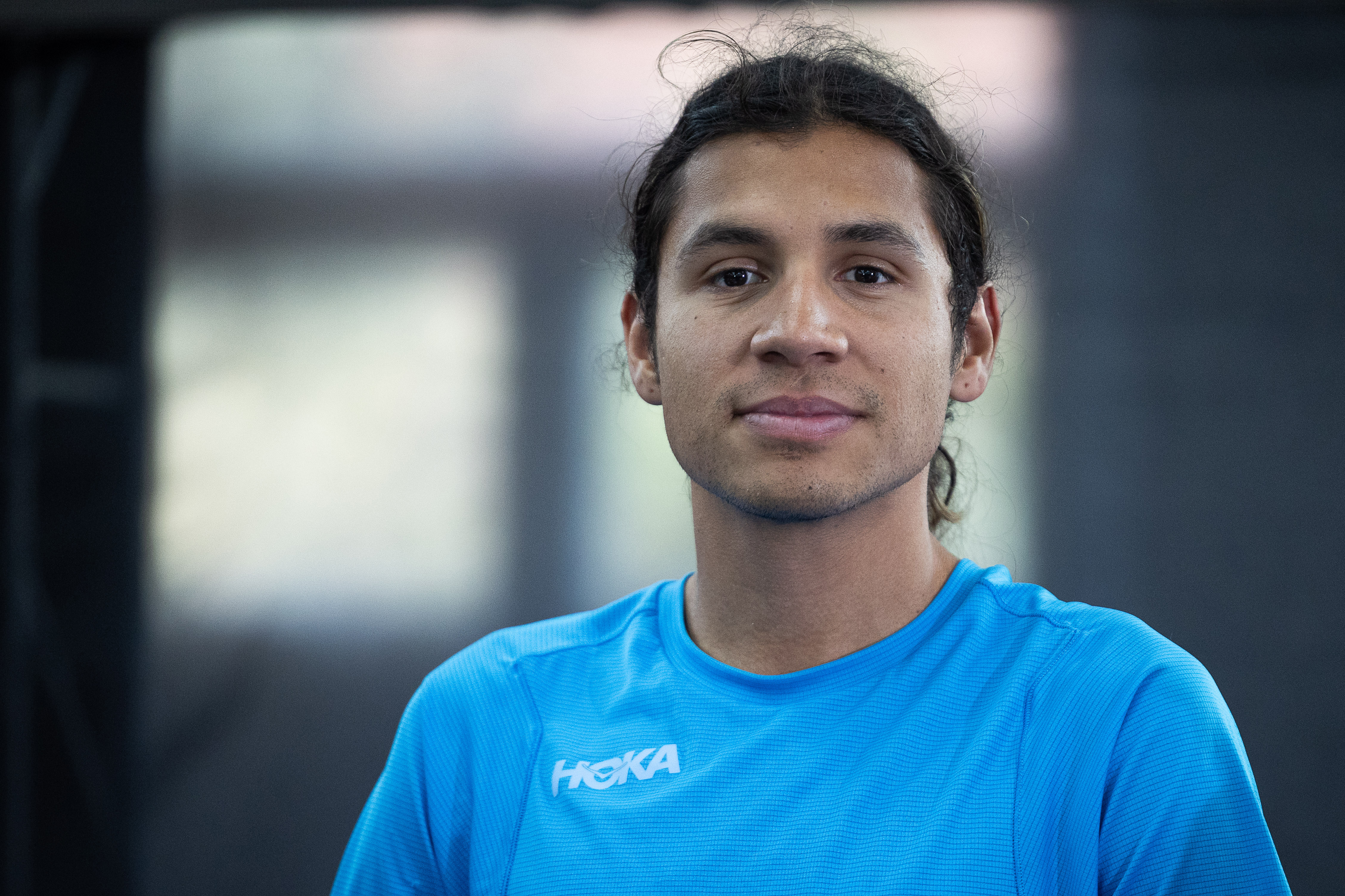 El fondista Luis Grijalva posa para una fotografía durante una conferencia de prensa en la Ciudad de Guatemala. (Foto Prensa Libre: EFE)