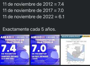 En 2012 sí ocurrió un terremoto en Guatemala, pero no fue el 11 de noviembre. Este se reportó el 7 de noviembre de 2012. Tuvo una magnitud de 7.2 grados en la escala de Richter.
