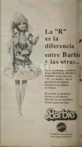 “La R es la diferencia entre Barbie y las otras. No te confundas, el nmbre de la original muñeca Barbie se escribe con R en medio y esto te garantiza el respaldo mundial y la calidad de Mattel“, decía el anuncio.