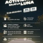 Este viernes 13 de diciembre es la última noche de actividad bajo la luna. A partir de las 7 horas será el encendido del árbol, con personajes como el Grinch, sport de fotos, mercadito navideño, música en vivo y recorridos como show del expreso polar en Teatro Animalia; el costo del boleto es de 50 quetzales para adultos y 25 quetzales los niños.