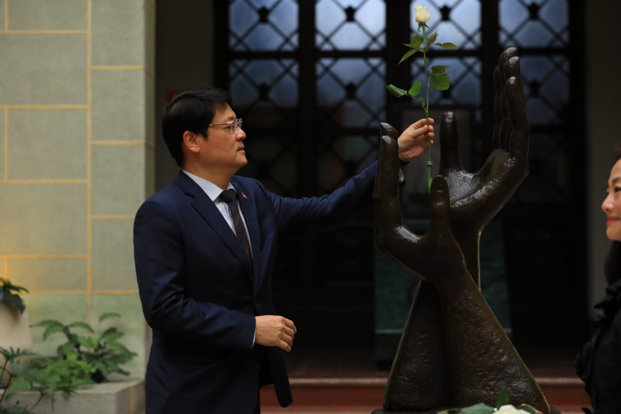 La actividad especial se llevó a cabo en el Patio de la Paz, del Palacio Nacional de la Cultura, donde el embajador Li-Cheng Cheng agradeció el reconocimiento luego de efectuar el Cambio de La Rosa de la Paz.
