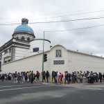 En el santuario ubicado en la zona 1 capitalina se observan largas filas de familias para ingresar al santuario. La permanencia es de máximo un minuto con el fin de resguardar los protocolos de bioseguridad.