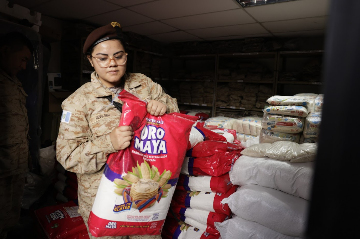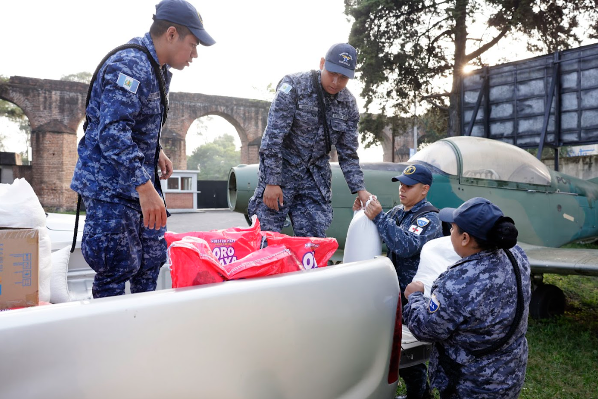 Los elementos del Ejército llevan a cabo el traslado desde la Fuerza Aérea Guatemalteca (FAG) a los municipios o departamentos designados por la Secretaría de Seguridad Alimentaria y Nutricional de la Presidencia (SESAN).