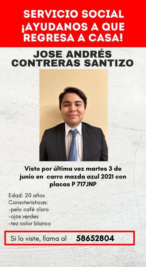 La última vez que José Andrés Contreras Santizo se comunicó con su familia fue el 3 de junio pasado. Desde entonces, la familia y las autoridades siguen con la búsqueda del joven.