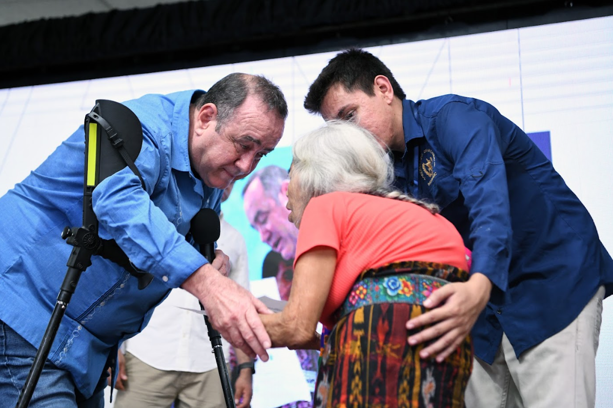 Durante la entrega de notificaciones en el municipio de Mazatenango, doña Nicolasa recibió esta ayuda de manos del Presidente de la República.