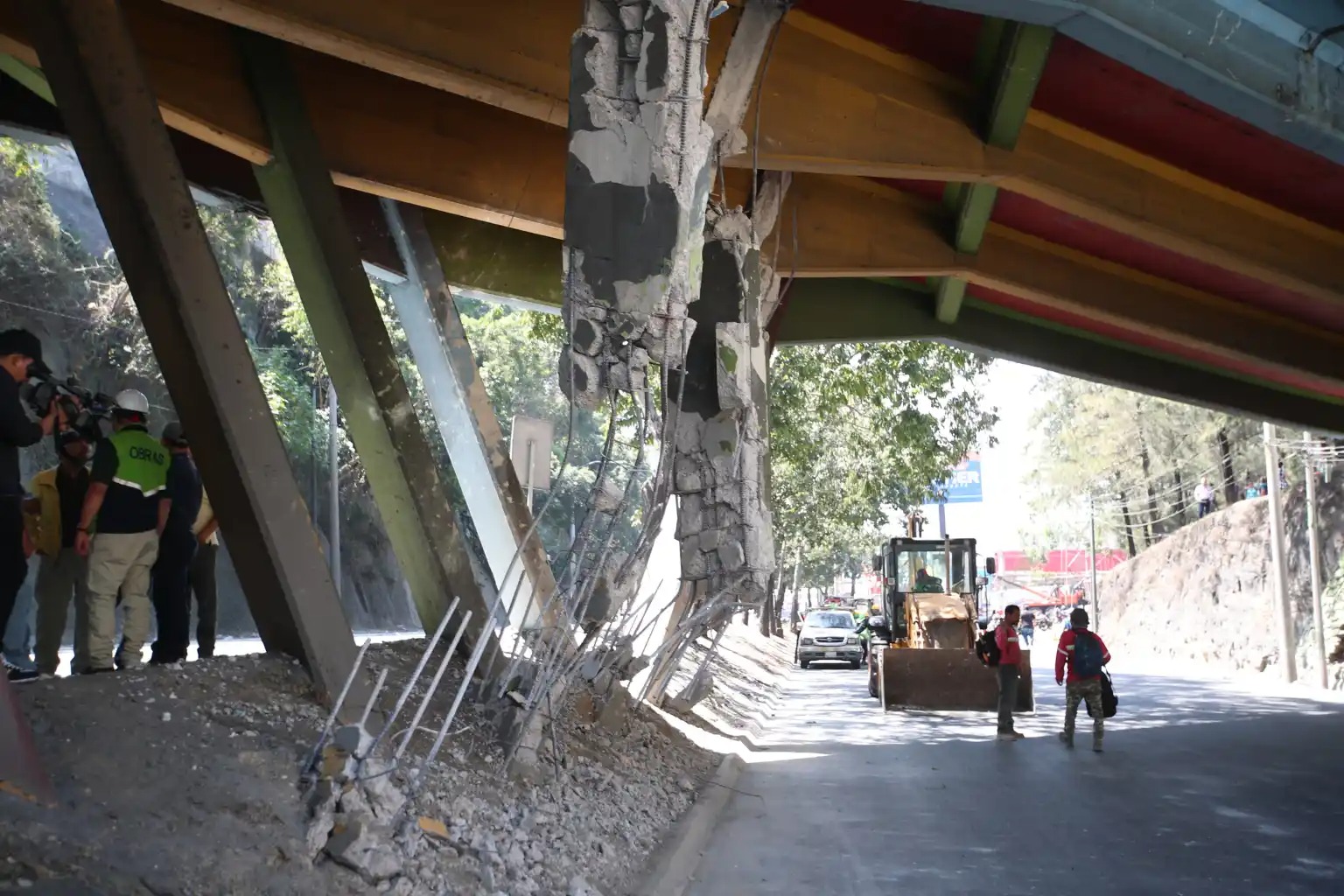 El puente Adolfo Mijangos López, situado sobre el Anillo Periférico, quedó dañado luego de que un tráiler chocara la estructura en febrero pasado, comprometiendo seriamente sus bases y soportes.
