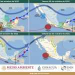 Así como “rachas de viento de hasta 50 km/h y oleaje de 1 a 2 metros de altura y posible formación de trombas marinas en las costas de Tabasco y Veracruz, y rachas de viento de 70 a 90 km/h en el Istmo y Golfo de Tehuantepec“.