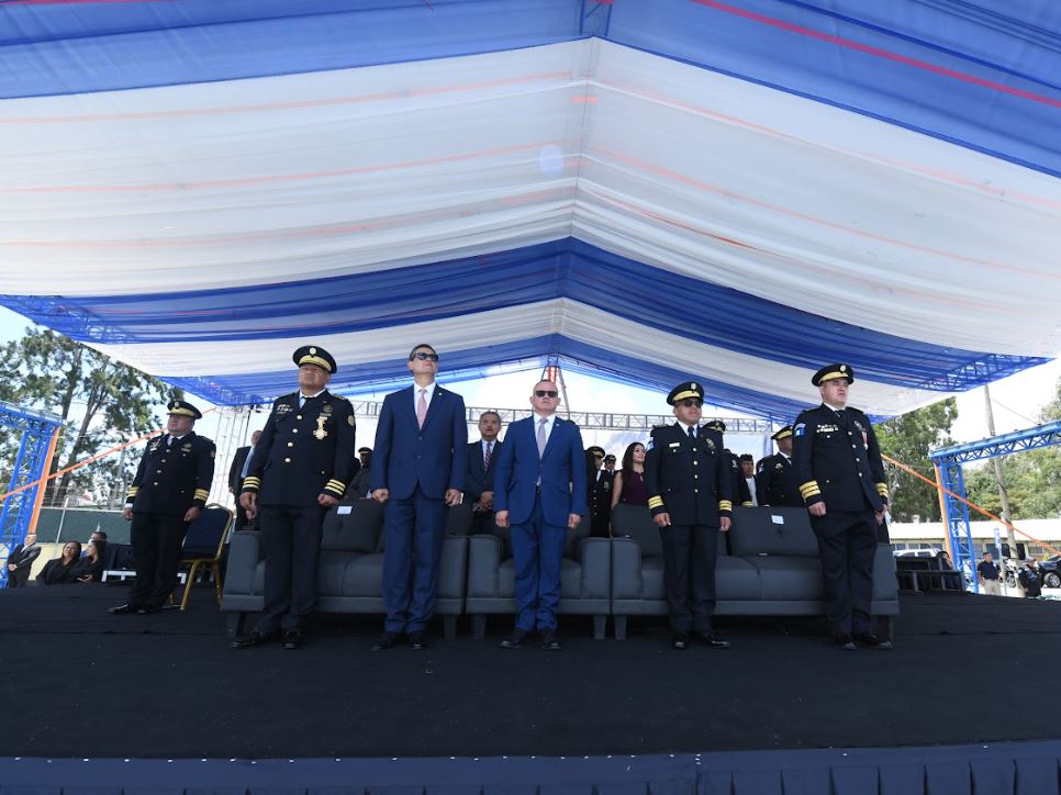 Posteriormente se desarrolló la imposición de insignias a los graduandos del vigesimoquinto curso de capacitación para el ascenso al grado de oficial primero de Policía y el Diplomado Universitario en Gerencia Policial.