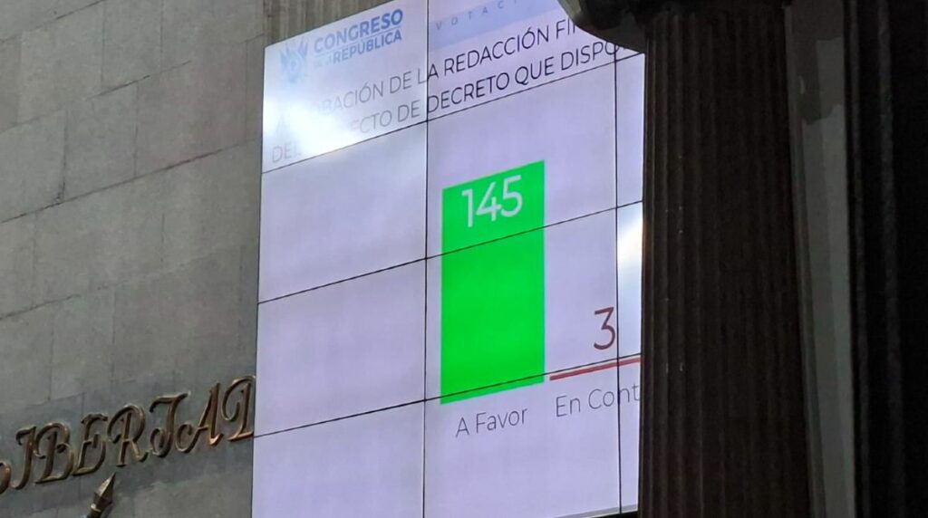 El Congreso de la República aprobó con 145 votos a favor el Decreto 11-2025, que da vida a la Ley para el combate frontal de los grupos delictivos u organizaciones criminales transnacionales y terroristas denominadas maras o pandillas.