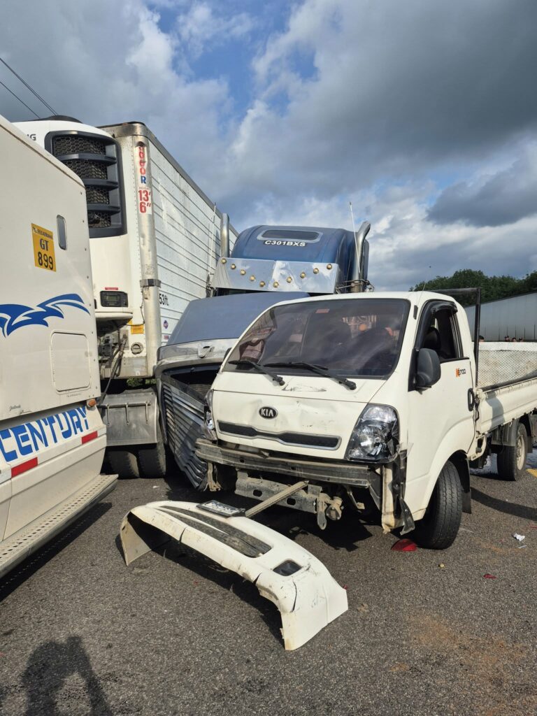 La tarde de este jueves el piloto de un tráiler perdió el control y colisionó con varios vehículos en el kilómetro 116 de la Ruta CA-2 Occidente, jurisdicción de Cocales, Suchitepéquez.